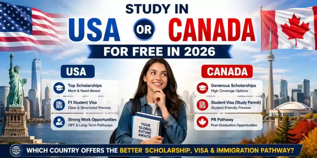 Scholarship in UK/Canada/USAStudy in USA or Canada for Free in 2026: Which Country Offers the Better Scholarship, Visa & Immigration Pathway?